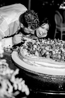 Toques tradicionales y modernos: La boda incluyó una hermosa presentación folklórica y un tradicional carrito de raspados panameño. Para cerrar con broche de oro, la pareja decoró su propia torta junto al chef pastelero, ¡una tendencia que promete marcar 2025!