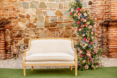 Elsa y Mark deseaban una boda íntima que respetara la esencia del lugar elegido. Optaron por una decoración sencilla que realzara la belleza natural del espacio sin intentar transformarlo. Este enfoque permitió que la historia y el carácter de las Ruinas de la Compañía fueran los protagonistas junto a ellos.